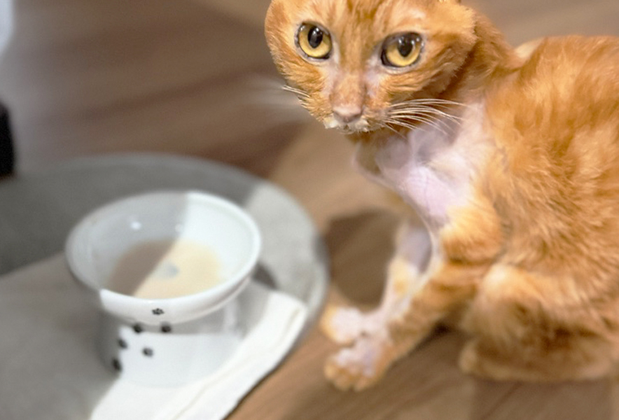 お鼻とお口にべっちゃりと流動食やちゅーるをつけて・・・